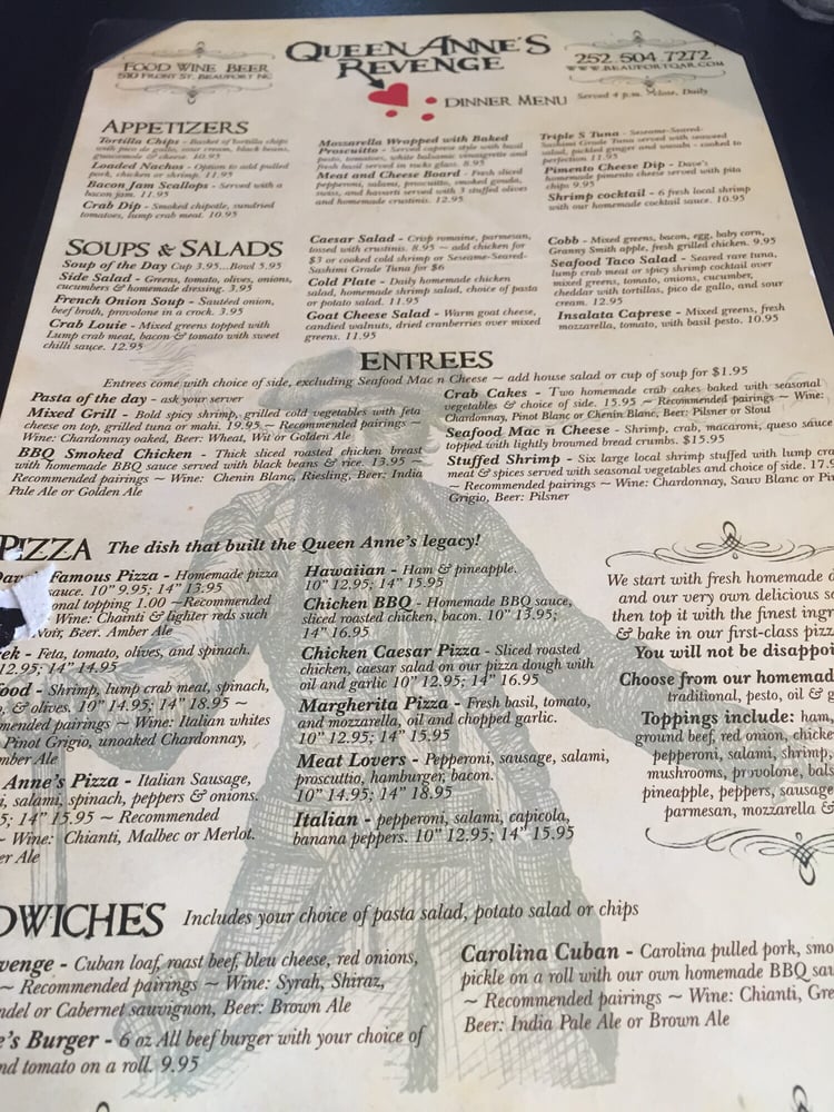 Queen Anne's Revenge Menu